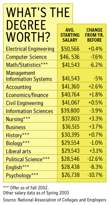 There was some discussion about how lucrative a degree in economics was. Economics\finance is number 6. I don't know why they put them together. Maybe they are about the same. I have a BA in Economics and I'm going back for a degree in Accounting, which is number 5 and on the rise.