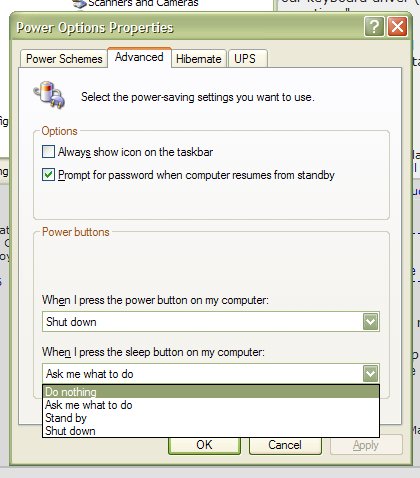 Rather than unistalling your keyboard driver (you need a driver and the default one still lets the button shut down your computer) go to control panel and open up "power options".