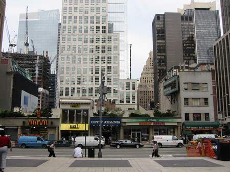 Here's another picture I made which I find very curious. Those 1 storey buildings you see are situated right in the heart of Midtown Manhattan, completely surrounded by skycrapers, half a block away from Times Square and a few blocks away from the Empire State Building. And at the corner opposite of those buildings there's Bryant Park.