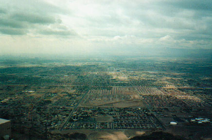 This one was taken from on top of a nearby mountain/hill. The air quality and cloud cover make the lighting real bad so you can't see the strip (which is further south (left)) or downtown. And this wasn't taken with my digital camera either, it was a scanned photo.