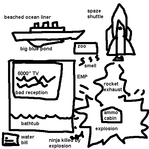 A nice lofty view as well, over the pyramids or New York skyline or something pleasant like that...