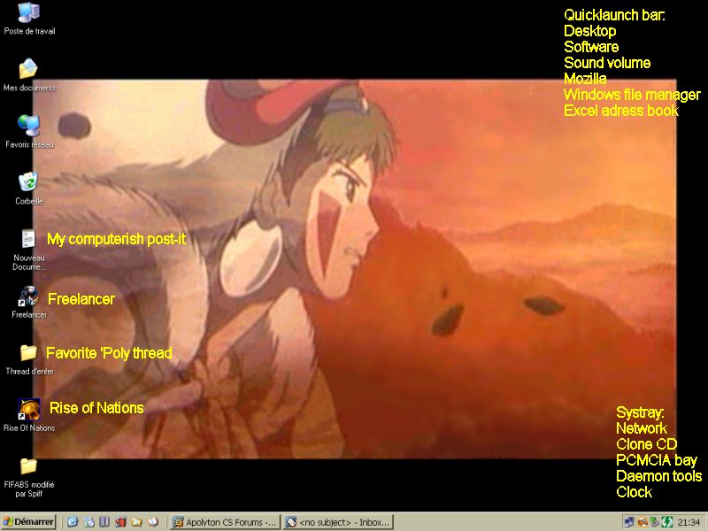 This time instead of just showing off your new desktop picture or winXP 'theme', I want the focus to be on the installed / running programs you have.