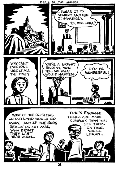 This is a lefty comic strip! the magician cast is nothing more than the greedy capitalist elites, striving to keep all the wealth (magical power) to themselves, and not share it with the masses!