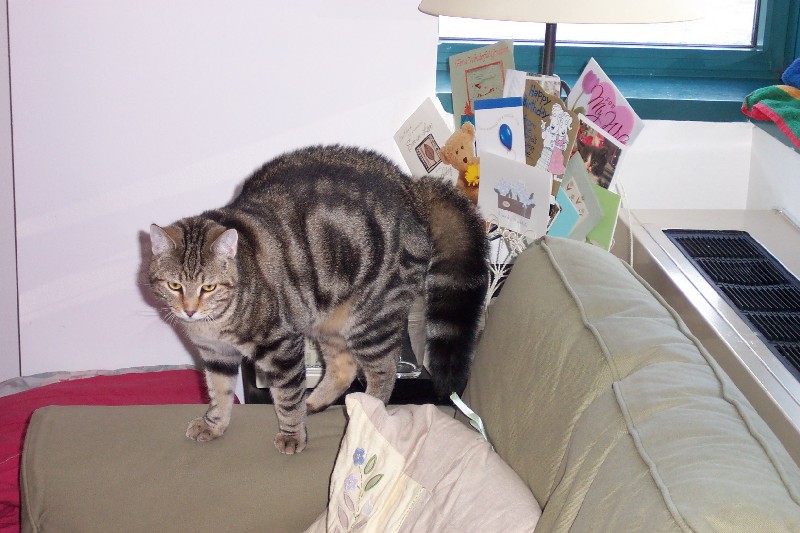 • Check out my cat Tad after getting all startled by the other one running around with a bag caught on his head.