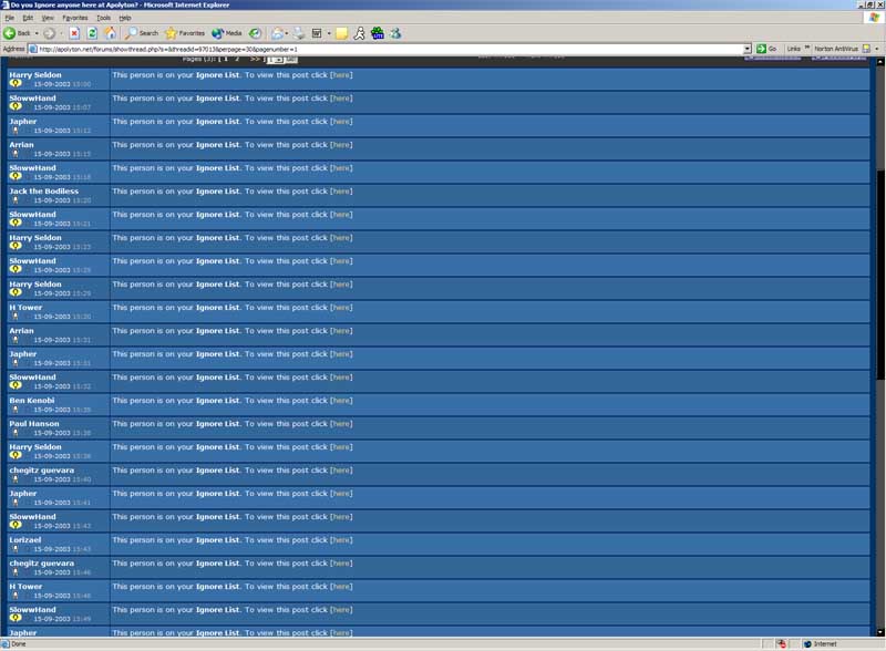 That game will last a long time.we should find those threads and keep bumping them so that we always have those ignored poists