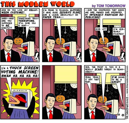 and why did the contract for those machines, those diebolds, have to go to such a technologically inferior system? that's just asstastic.