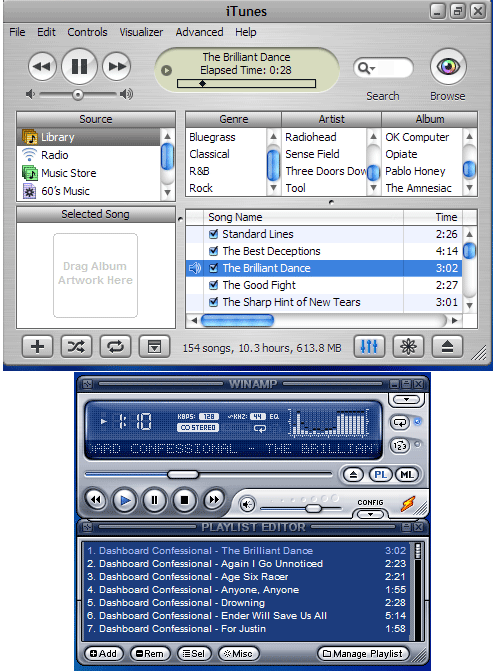 The following screenshots were taken with the default Winamp 5 skin in a few of the configurations that you can place them in (all of the windows are detachable and can move around).