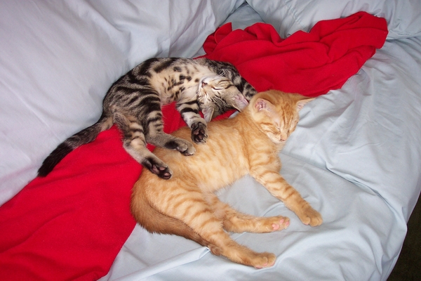 Now, living in NYC, I have two indoor cats - Tigger and Tad. They're both male and were also fixed pretty recently. We were getting a bit worried a couple of weeks before the operation because their little penises were occasionally poking out when they were licking themselves, and they were almost 6 months old. Luckily no spraying got started.