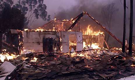 See all of those Eucalyptus trees in the background? The area is FULL of those trees and there hasn't been any big fires in at least 50 years. That means a half century of leaves and bark and undetgrowth all just waiting for a faire to come by.