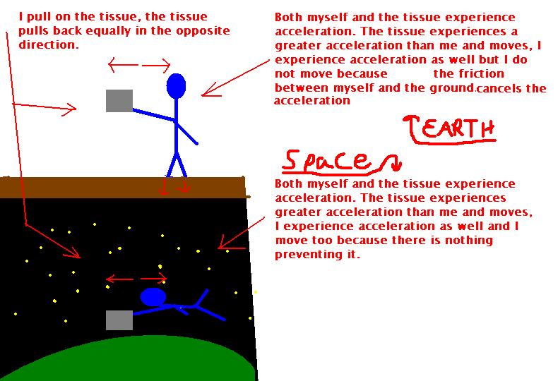 perhaps I should calrify my question. Why does the tissue move? (and is my drawing the correct answer?)Whenever any power is applied on an object, then an equally large power facing in the opposite direction is created. That's it .