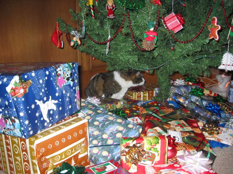The tree has been up and partially decorated for about 2 weeks, but she asked me to put some more crap on it. God, this is like that recent Doonesbury comic with the tree stating, "I feel totally slutty." Great, mine looks like a cheap crackwhore instead of a high-priced escort.