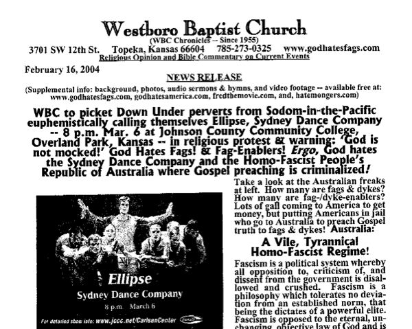 Hey, I see our friend the Rev. Fred Phelps hasn't posted anything about gay marriage on his site. You'd think he'd be foaming at the mouth about it.