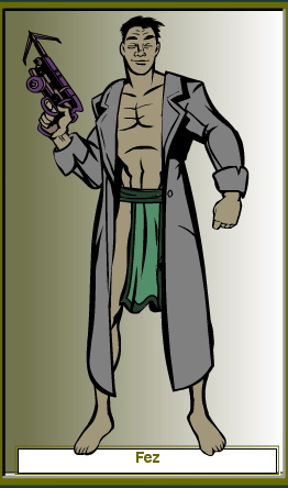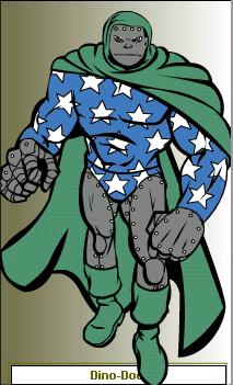 Dino-Doc- This super-villain provides the grunt work of the brotherhood of evil Apolytoners. Little is know about his character, other than his great physical strength and his reclusive nature. Some say that he hides behind a mask both literally and figuratively to hide the shame of a love he lost in his native country of Mississippi. In any event, this Apolytoner is dangerous, and should be treated with great caution by Earth's superheroes!