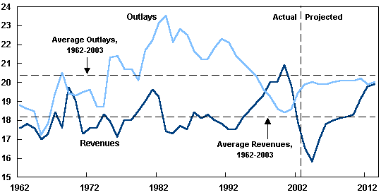 If nothing is done, and Bush's tax cuts are made permanent (as seems likely) then the US will face budget deficits of 10% to 15% of GDP 15 to 20 years time.