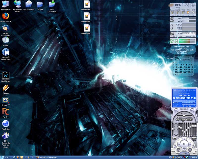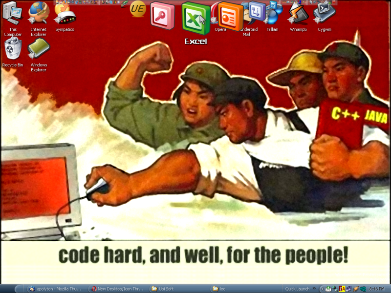 Opera, Thunderbird, Trillian, and Winamp remain my most popular desktop icons. When I already have things open, I launch them from Objectdock. Eh.