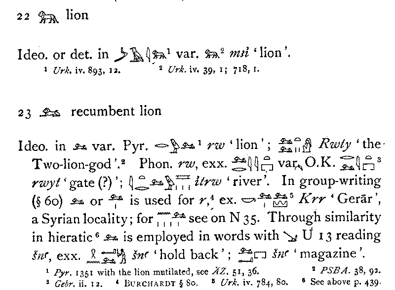 I'll try to make a scan of the "rw (lion)" glyph from Gardiner's Middle Egyptian Grammar with it's explanation. But I must warn you, Gardiner was a real Egyptologist