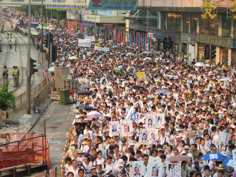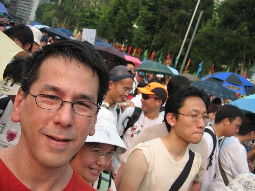 And this is me waiting at Victoria Park along with thousands of others for our turn to get onto the streets and march to Central district. Took about 15 minutes to slowly walk to the starting point and then we had to wait for about 30 minutes before we could get on to the street. Then it took about an hour to go half a mile. After that it was an easy two mile walk.