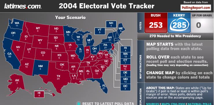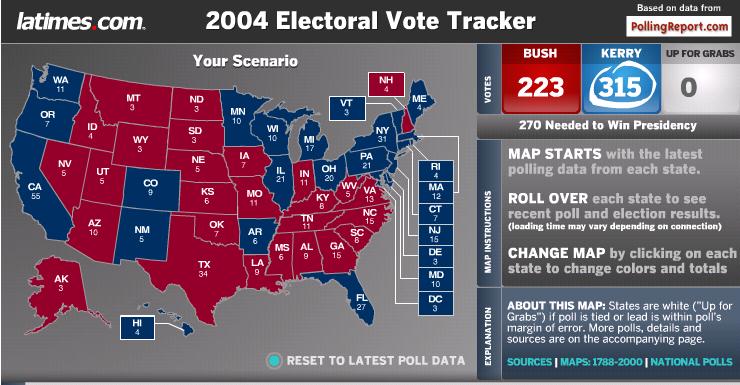 At any rate, you're losing the bet, big time. There's no way Bush will win with 2/3 of the EC. Not when he, has the incumbent, is polling 47-48% in most polls this close to the election.Tutto nel mondo è burla