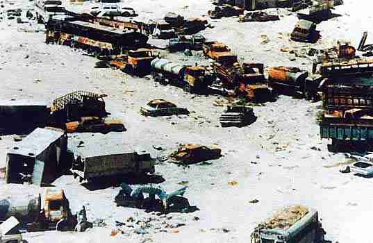 BTW, here's a pic of the aftermath of the Highway of Death - please could someone point out to me just one military vehicle in that mass of charred remains...