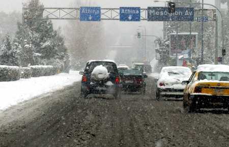 On the home front: This is the first time we've got snow in downtown Athens since March 1987 (and even then it hadn't snowed that much). Snow begun gathering since yesterday afternoon and by the morning, we had at least 5-10 cm of snow everywhere. Bread, groceries and videotapes