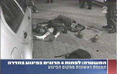 A suspected assassination.Indeed, wasn't this very bout of carnage precipitated by an Israeli assassination the other day?