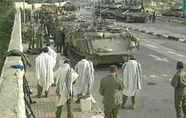 Praying behind the APCs.