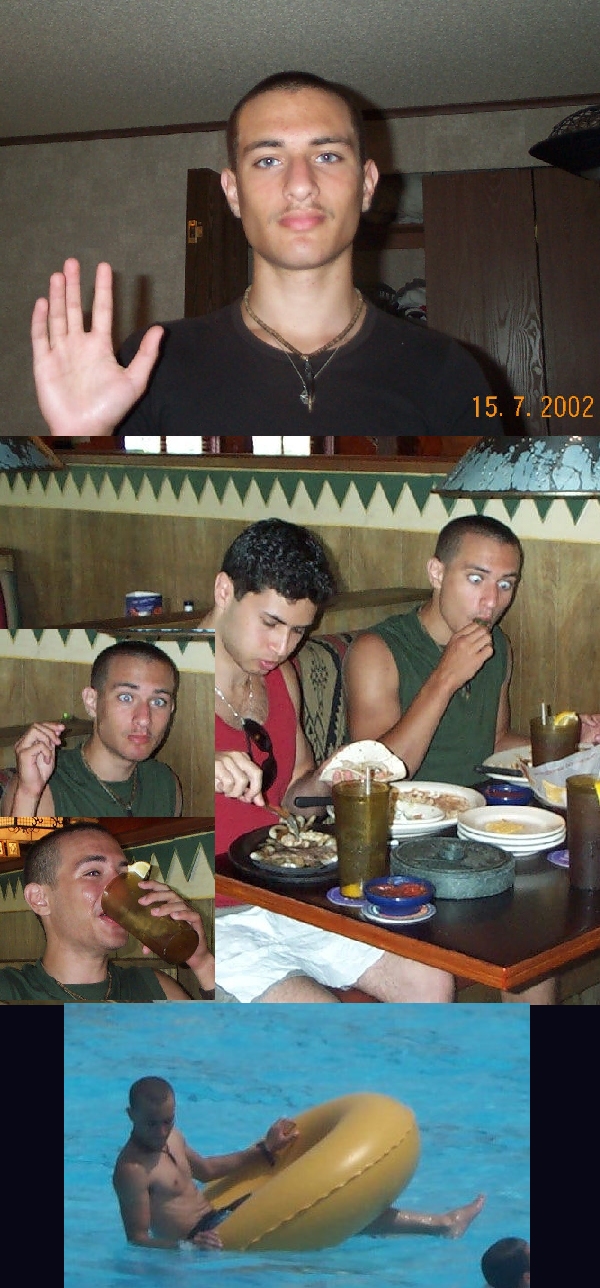 Hello! It's, Mark... Another Israeli, now visiting my dad in Florida. While all the other brothers sleep in our small country, I'm sending y'all a few photos: Me right now, waving hello, me in Mexican restaraunt eating a pepper whole (don't try this at home, folks...!) and me maneuvering my attack tube in a big pool.