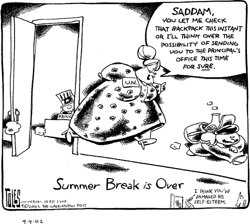 And some of us are examining the possible benefits of the removal of Saddam wrt to the future welfare of the people of Iraq (specifically the autonomous, Kurdish North)."Beware of the man who works hard to learn something, learns it, and finds himself no wiser than before. He is full of murderous resentment of people who are ignorant without having come by their ignorance the hard way. "