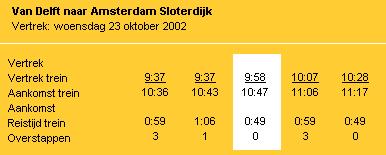 Taking the train from Delft CS to Amsterdam Slotedijk is no option for me. I have to travel 15 minutes by bike to get at Delft CS, than I have to step over on Den Haag HS and on Amsterdam CS again, and after that I hvae to walk another 5 minutes.