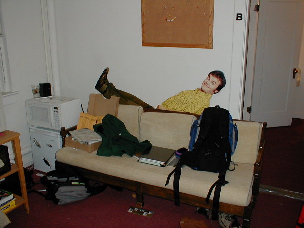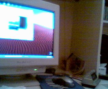 Here's my room last year. That's my desk with the civ3 tin proudly displayed. I'm in the same room now, but my desk is next to where the camera is in the shot. The tv, slipknot poster, and couch were all my roommates and no longer reside in my room.