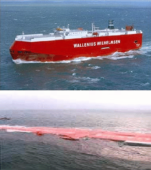 A London spokesman for the owners, Wilhelmsen Lines, said the Tricolor had been bound for the English port of Southampton with a cargo of 2,862 new BMW, Volvo and Saab cars worth an estimated total of between 25 million and 31 million euros (dollars), and 77 containers, which had been loaded at the Belgian port of Zeebrugge.