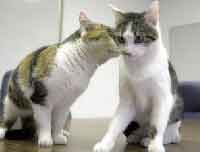 COLLEGE STATION (Texas) - Rainbow the cat is a typical calico with splotches of brown, tan and gold on white. Her clone, cc (for carbon copy), has a striped grey coat over white.