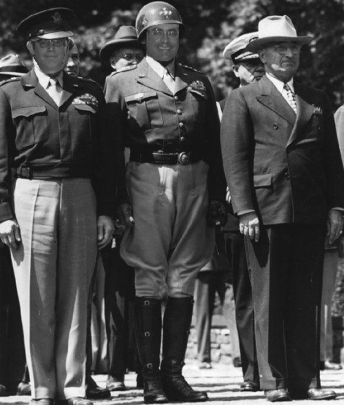 Here we see President Truman with Dwight Minginhower and George 'Blood N Guts' Rahtton in an awards presentation shortly after the fall of Germany. 1945.