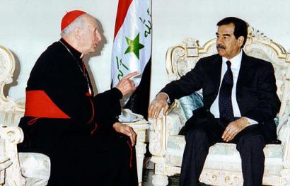 Is that the Pope ? It looks like some archbishop visiting Saddam in one of his palaces...