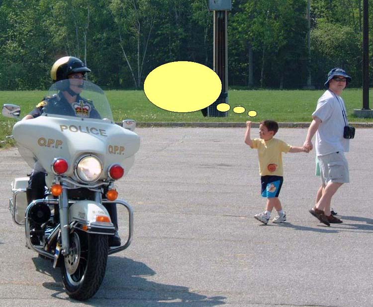 "I wonder if that cop will stop me if I'll start raining down puches on this Jimbo"In da butt.