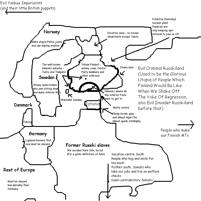 Since foreign media teaches us that Finland consists of Helsinki (as evidenced by the mall-bomber case, when all the foreign media referred to "Helsinki bombing", when it occurred in city of Vantaa), this map is specifically Helsinki-centric.