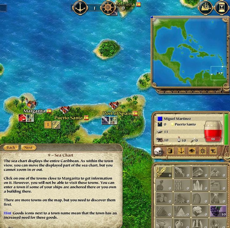 That's not bad, but you expect more than that from a computer game. Say, when you click on a port, it tells you what goods it has for sell.