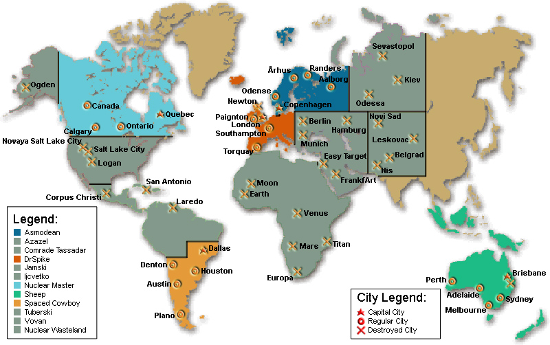 Nuclear Master didn’t feel like building this month though. He wanted to make sure Tuberski didn’t survive one more month. Two nukes were sent to Laredo, which turned to dust. Though Tuberski wasn’t hit… he was visiting the Wasteland area also known as San Antonio. Now he can call himself president over the Central American Wasteland.