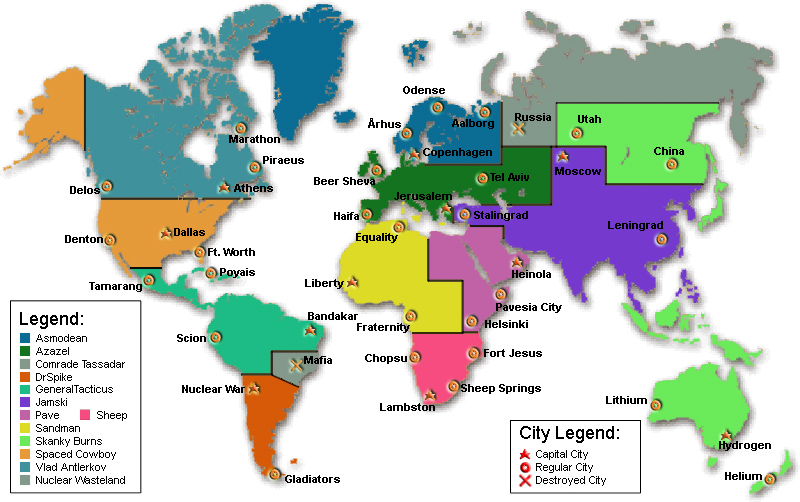 Like I said in my post, I thought it would be a bit tricky to do just that. But I finally managed to get this out of the way, and I hope I didn't miss any other late sign-ups... Here's the world after the first round: