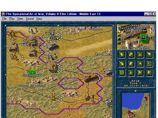 This game is freakin addictive. I play one arab Israeli war and I sit there for 15 minutes a turn. I even lost.....the AI whooped my ass. Eygpt ok went across the Suez, and Syria. We got into Israel and up the Sinia, but the Israeli airforce bombed the bridges,and launched a huge tank counter-attack and pushed us back. But it was fun.