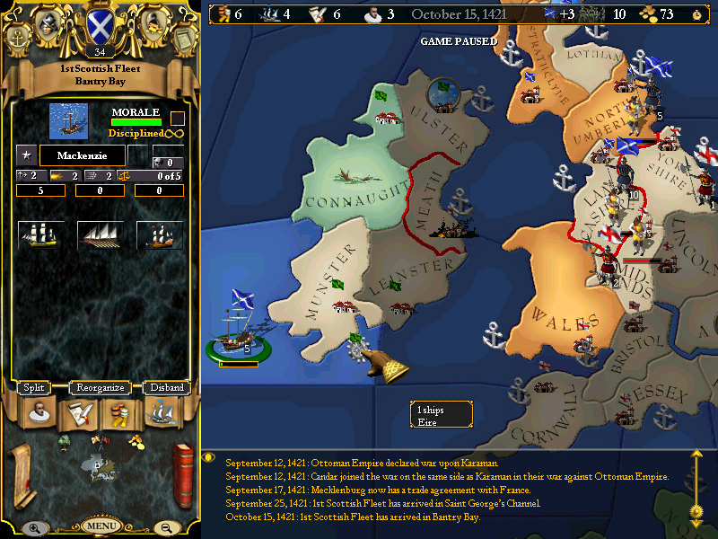 Leinster is empty and we actually have a bigger navy than somebody! WhoooHooo! I dunno....whatcha think, Rav? We could offload 5k troops in Connaught to gain the defensive bonus of the marshlands?