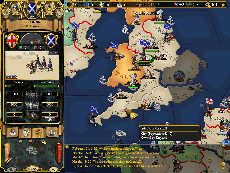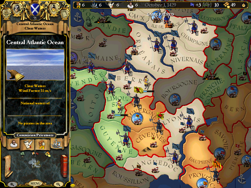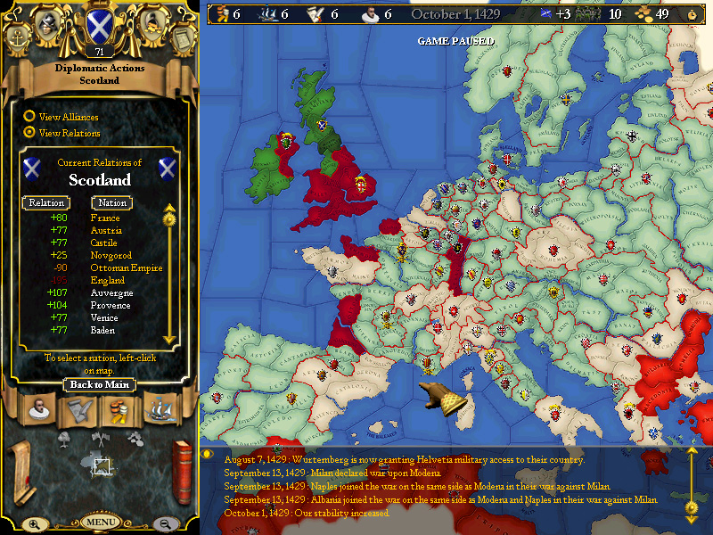 Played through to October, 1429, and it has been a period of relative quiet, however....the time has come to bring some additional pressing matters before the council. Scotland is strong....too strong, apparently for the English to attempt to pick a fight with us again, and that is good. It is good that they fear us.
