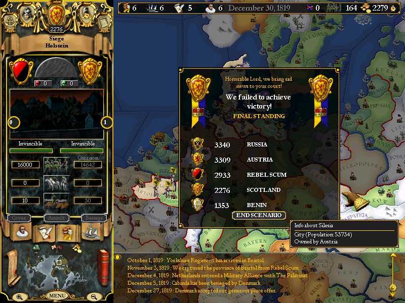 Not sure if I should admit to this, but in my Scotland game (I am about to give up on my Venice game as I can't get past a certain date) which I finally went back to finish, I was having some major Rebel trouble towards the end (as were other nations) and they ended the game controlling several provinces.
