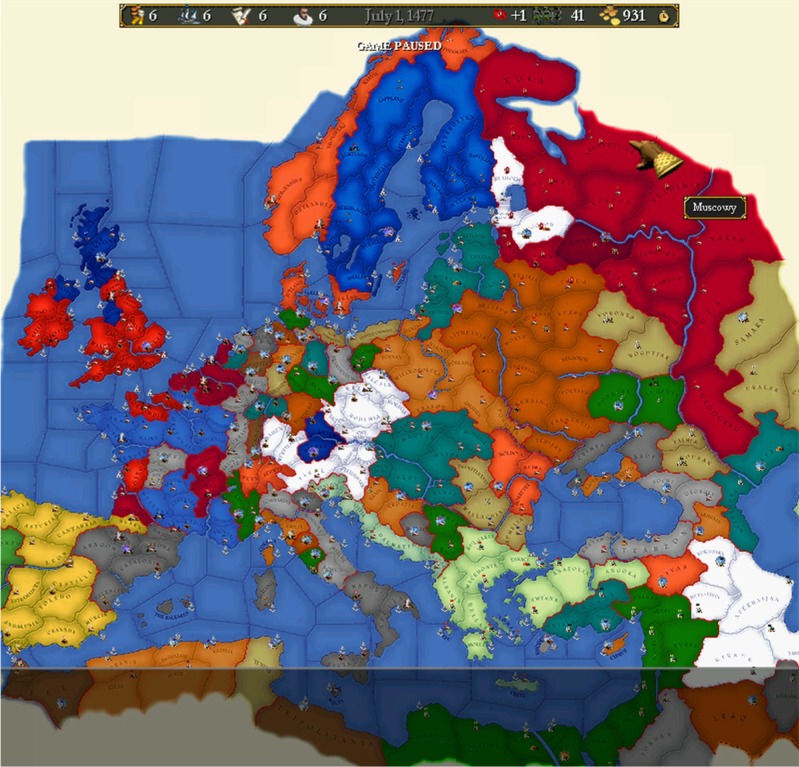 In late 1516, the Reformation came. Bremen, Saxony, and Sweden are the first nations to switch to Protestantism by 1520. Sweden is significant because their military alliance with Novgorod is now vacated, and that was the only thing keeping me from finishing them off. I will probably force-vassalize them and try to diplo-annex later. I've really been trying to bring down my badboy from all my early conquests. I had over three decades of peace until Ukraine attacked the Papal States out of the blue.