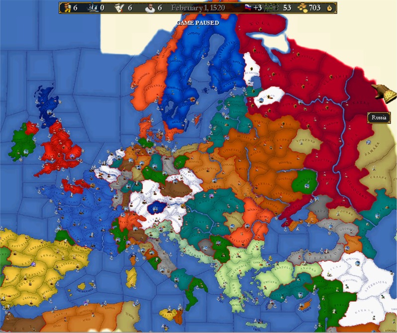 Finally on January 19, 1520 I had the "Empire of Russia" event. Of course I took over the Byzantine mantel. Now we'll see what wonderful historical events are in store for the freedom-loving Russians (serfdom is almost non-existent now).