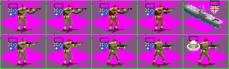 Jim - the units you've used for the Aussies would be good for the Brits as well (I'd give the Aussies one or two slouch hats). The British wore jungle green after 1942 I think. They also wore slouch hats and tin helmets in equal numbers, like the Aussies. I'd distinguish the Australians by giving one of your units an Owen gun, which was an Aussie SMG with a vertical magazine. I think Case did a graphic.