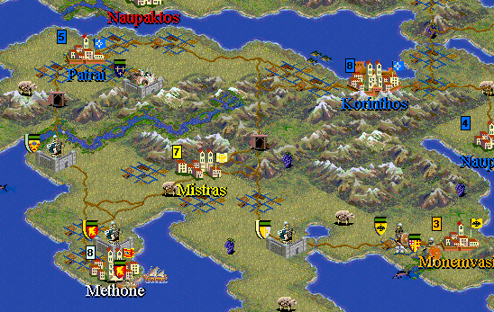 f) the city placement was just coppied from your scen (fading lights), i only added some cities in Epiros, and in the islands. This was done since i gather that you went to a lot of work to find the main cities of the period etc, so i could benefit from that effort