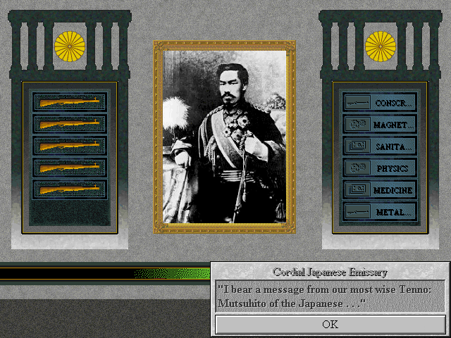 The time frame is 1875-1920, and the world is your playing field. Featured civs are the British, French, Germans, Russians, United States, Chinese and Japanese. If all goes as planned, you will have the choice of playing any one of them.