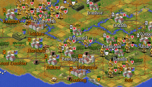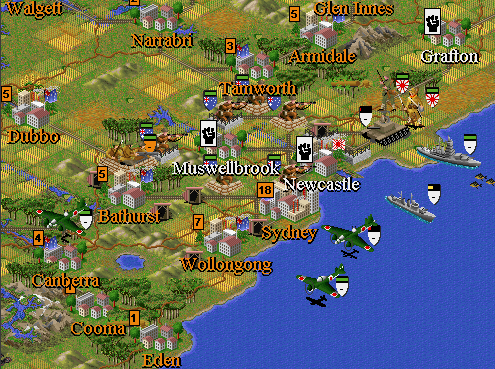'The Battle of Australia' is now ready for playtesting. As I said on the 'secret project' post, it covers a Japanese invasion of Australia, with the player playing as the Australians, who incorperate some American and British units (I'm hoping to create something like 'Red Front' down-under
