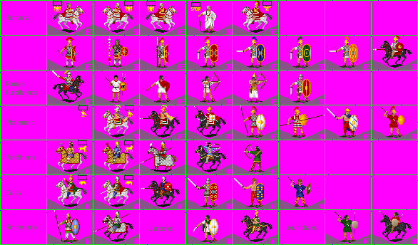 With the last of the units due to arrivie shortly (thanks again Fairlane), the thing is pretty close to being done. Can anyone help me with flags, banners, etc. for the various civs? I have vague ideas for the Romans and Gauls, but no clue about Parthia, Ptolemaic Egypt or Armenia (barbarian). Suggestions for any or all would be very helpful.
